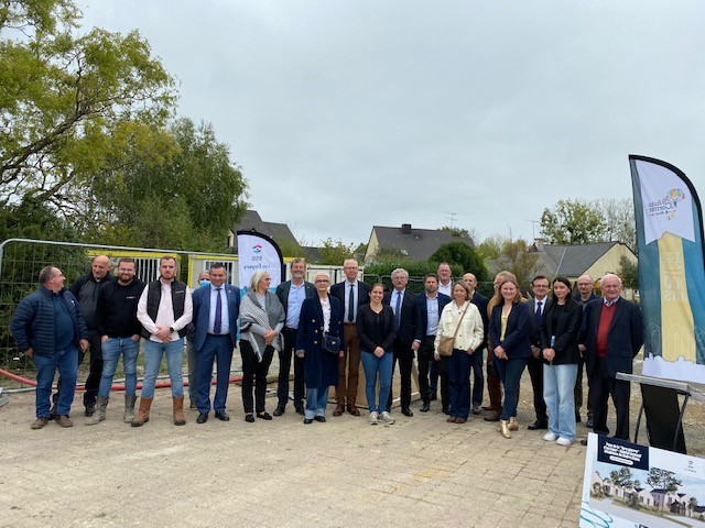 C’est à Saint-Aubin-du-Cormier, que nous venons, à plusieurs partenaires, de poser « la Première pierre » de la future résidence du Cèdre Blanc de 12 logements adaptés, organisée en 2 maisons distinctes de 6 appartements T1 bis, avec des espaces partagés propices aux interactions sociales.